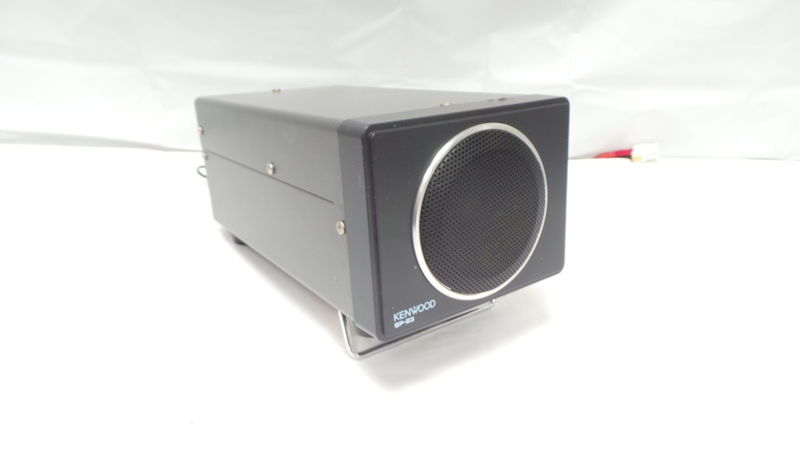 Kenwood SP-23 Base Speaker offers a frequency response range of 300Hz to 5kHz and an impedance of 8 Ohms. It has a power rating of 1W and features a 75-mm-diameter speaker. The speaker measures 180 x 120 x 310mm and weighs 2kg. It has a 1-m-long speaker lead fitted with a 3.5-mm jack plug and an instruction manual.