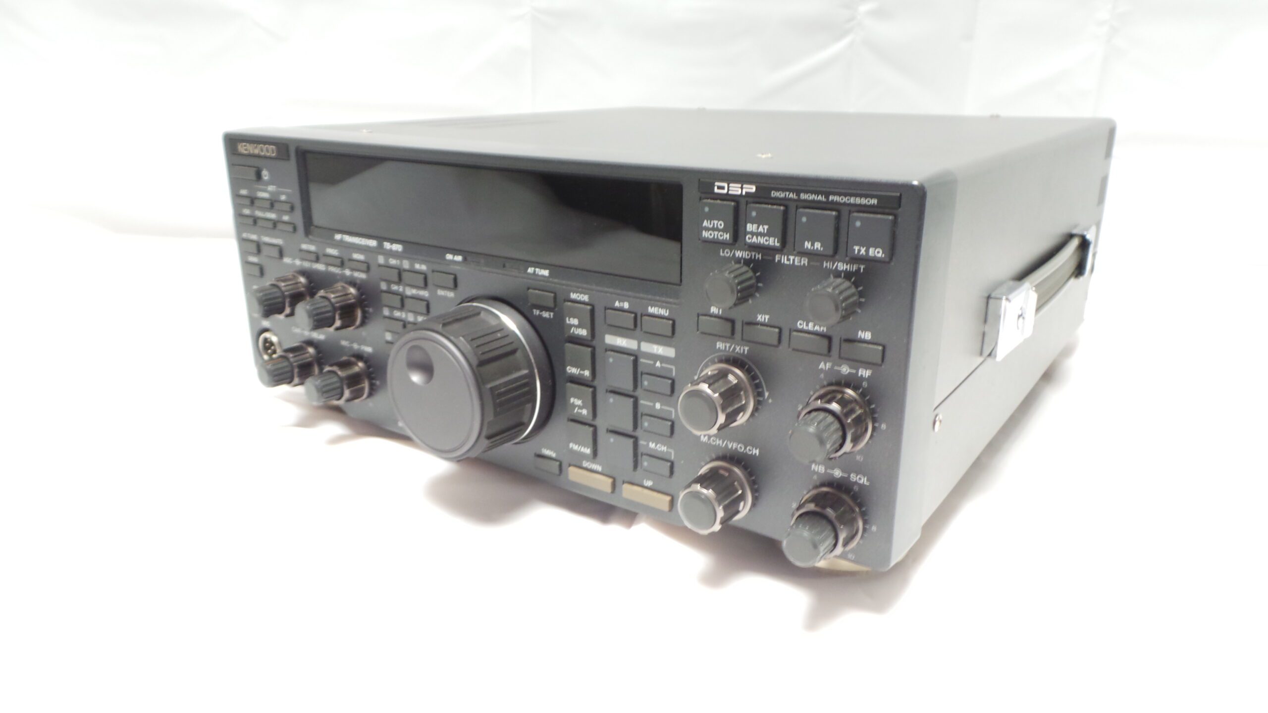 The Kenwood TS-870S is a sophisticated all-mode HF transceiver for amateur radio enthusiasts. It operates across the 160 to 10-meter ham bands and boasts a general coverage receiver from 100 kHz to 30 MHz. This transceiver integrates advanced IF-stage digital signal processing (DSP) technology, significantly enhancing both transmit and receive performance beyond the capabilities of traditional analogue circuitry. With a robust output of 100 watts for SSB, CW, FM, and FSK modes and 25 watts for AM, the TS-870S is well-equipped for various communication needs.