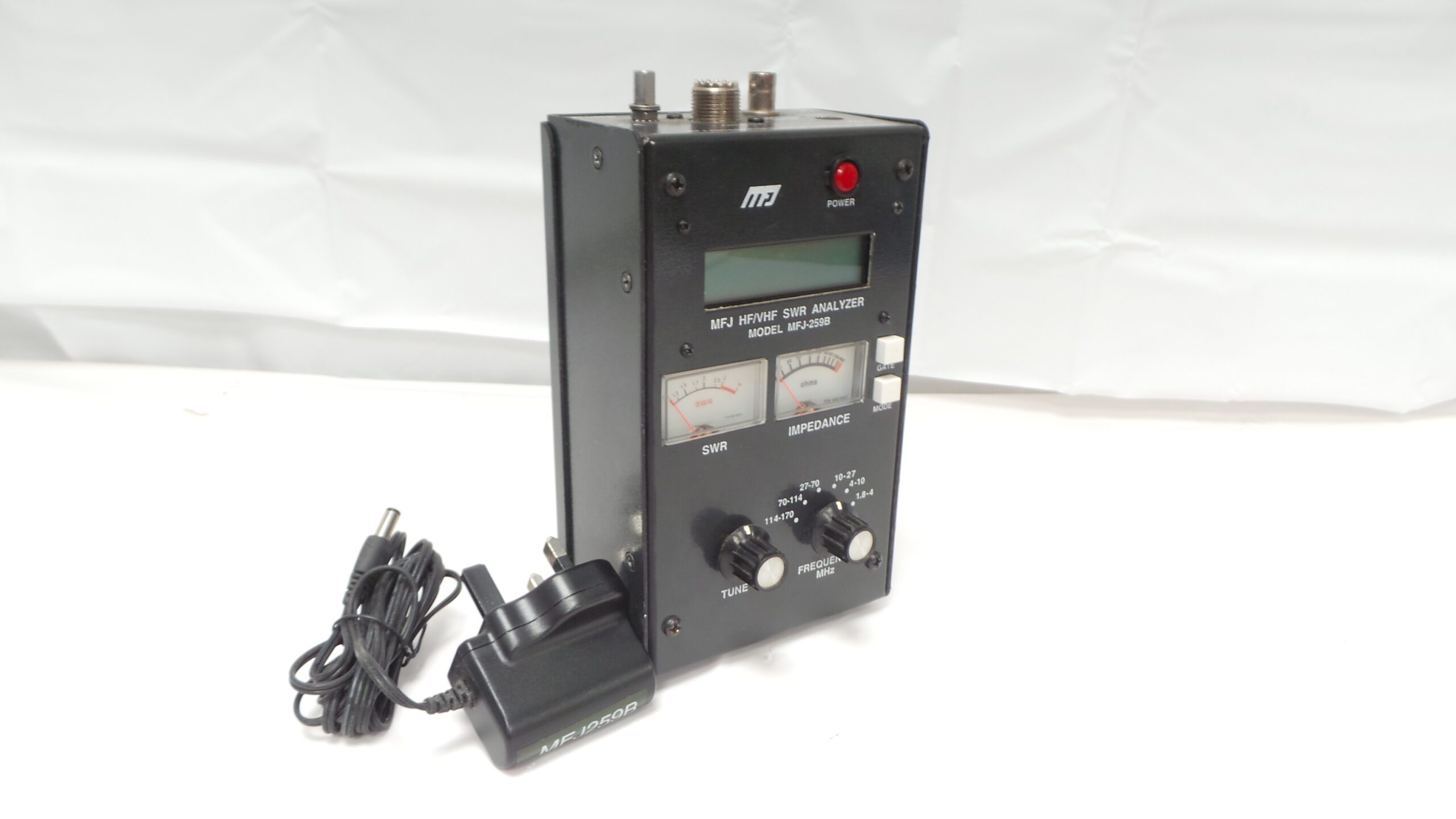 The MFJ-259 B’s user-friendly design features a large, easy-to-read two-line LCD screen alongside side-by-side meters for clear data presentation. With a built-in frequency counter, Ni-Cad charger circuit, and battery-saver functionality, this analyzer is designed for convenience and efficiency. The smooth reduction drive tuning simplifies operation; users simply set the band switch and tune the dial, making SWR and complex impedance readings instantaneous. The MFJ-259B is not just an analyzer but an essential tool for anyone serious about optimizing their antenna systems.