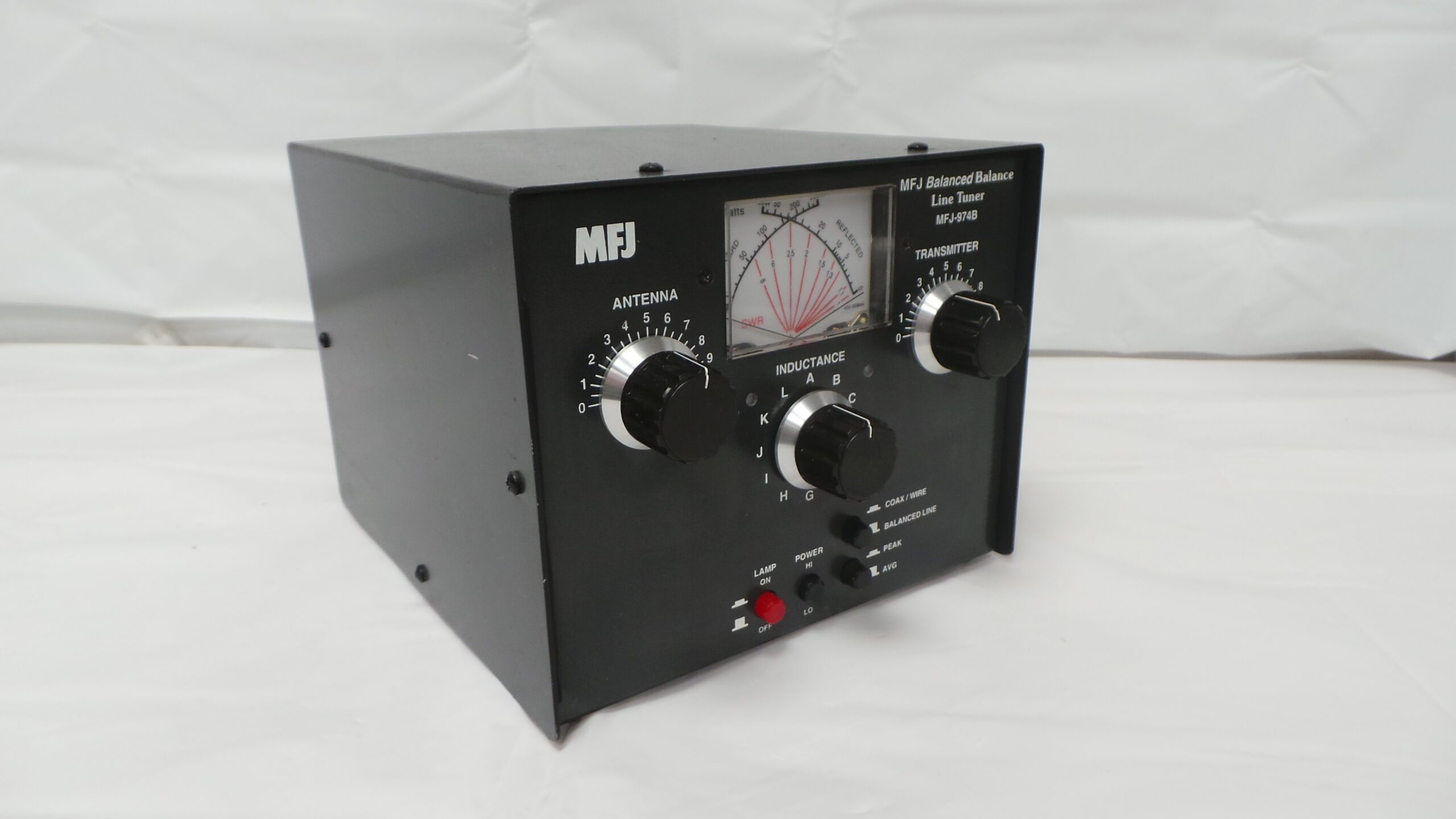 MFJ-974HB. 6 – 160 Meters Balanced Line Antenna Tuner. The MFJ-974HB is a fully balanced true balanced line antenna tuner. It gives you superb current balance through its very wide matching and frequency range. The MFJ-974HB is a fully balanced wide-range T-Network using four gear-driven 1000-Volt air variable capacitors and high-Q air wound tapped inductors, for 80-10 Meters and separate inductors for 6 and 160 Meters. The tuning components are mounted symmetrically to ensure electrical balance. A 1:1 current balun is placed on the low impedance 50 input side to convert the balanced T-Network to an unbalanced operation. The balun is made of 50 ferrite beads on RG-303 Teflon™ coax to give exceptional and efficient isolation. It stays cool even at maximum power.